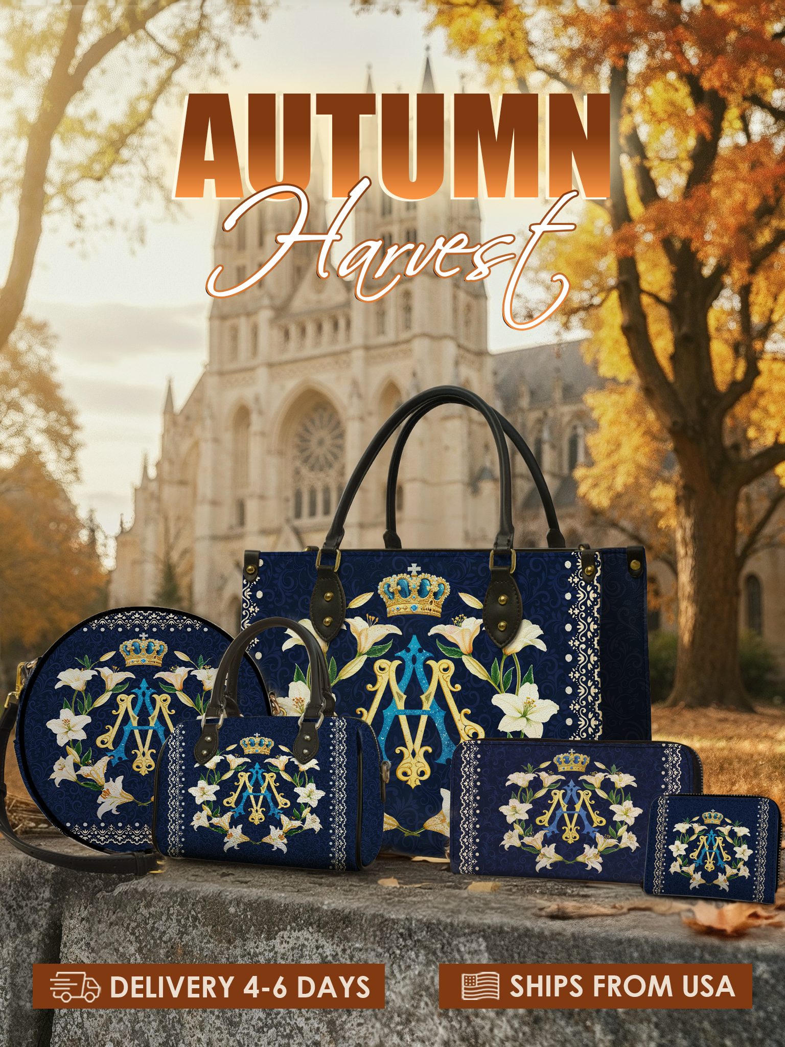 All of our handbags and wallets are shipped directly from Goodyear, Arizona. You’ll receive tracking once your order ships.