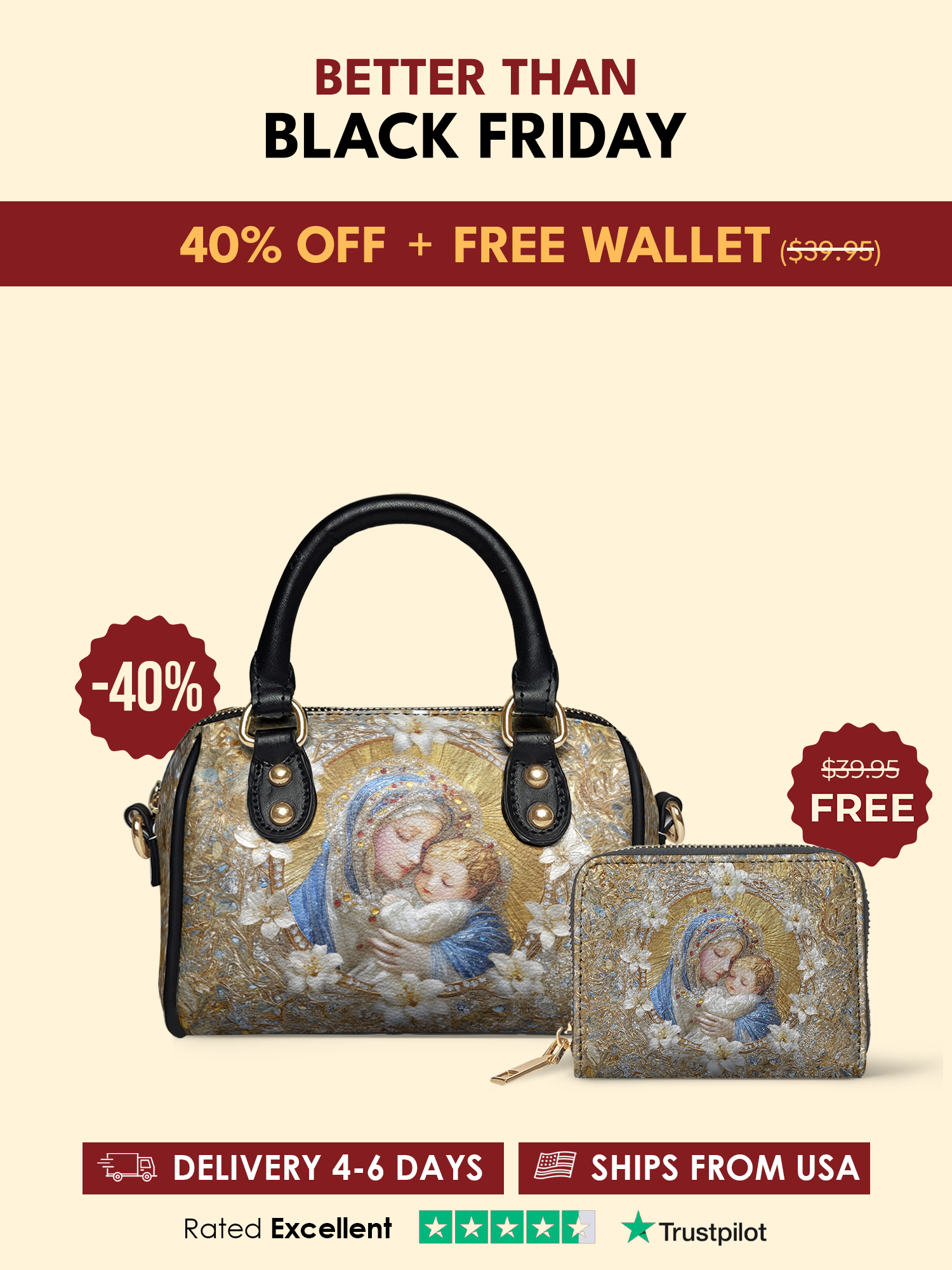 All of our handbags and wallets are shipped directly from Goodyear, Arizona. You’ll receive tracking once your order ships.