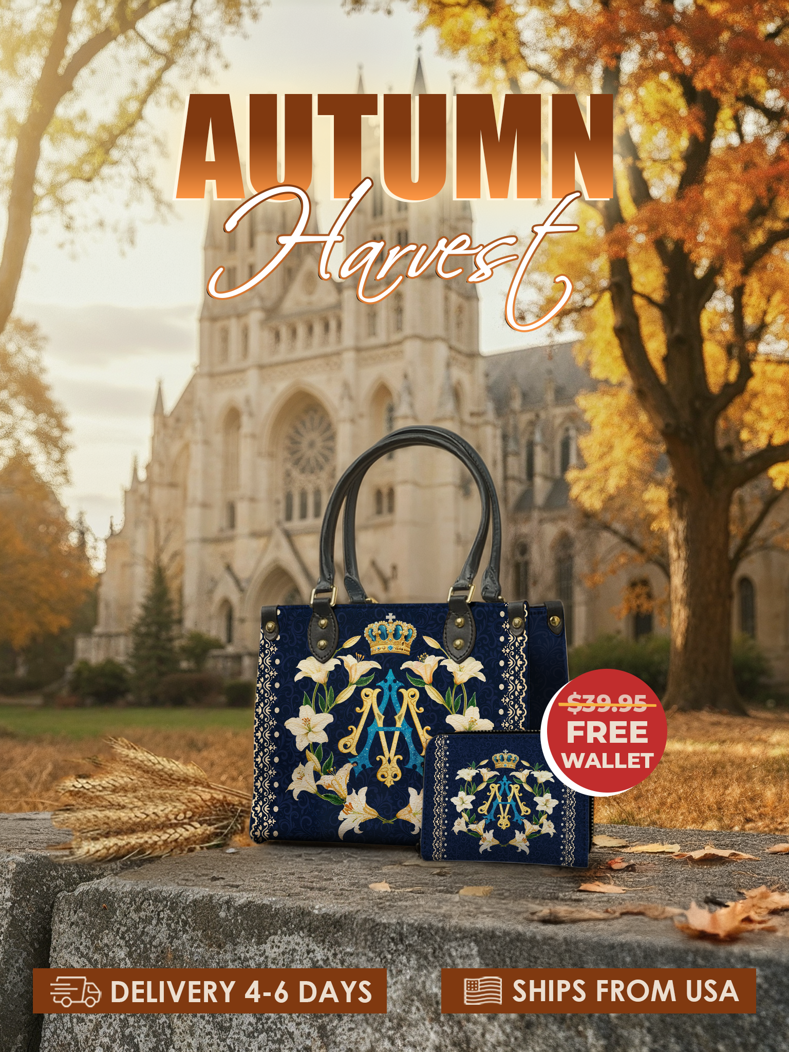 All of our handbags and wallets are shipped directly from Goodyear, Arizona. You’ll receive tracking once your order ships.