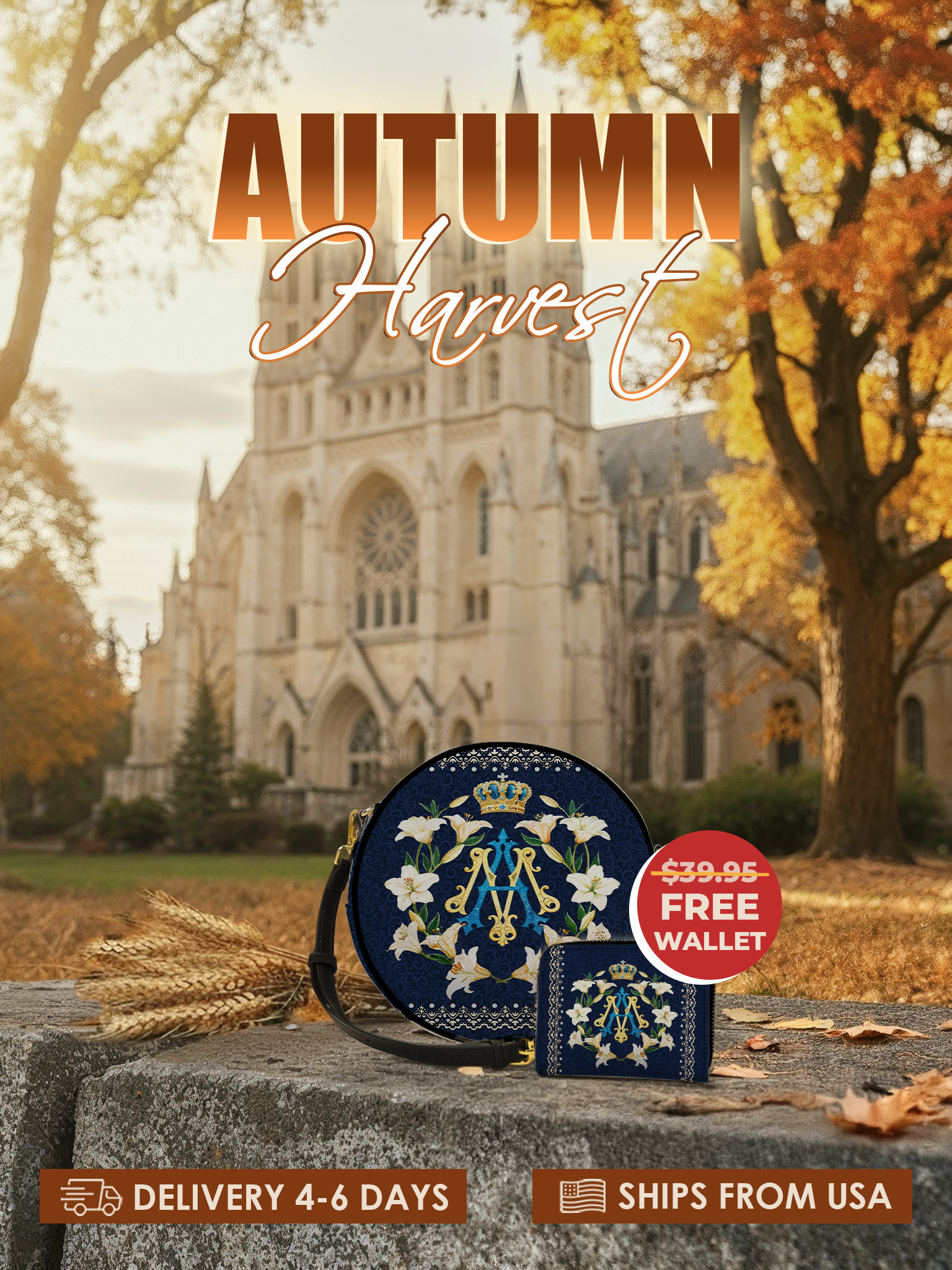 All of our handbags and wallets are shipped directly from Goodyear, Arizona. You’ll receive tracking once your order ships.