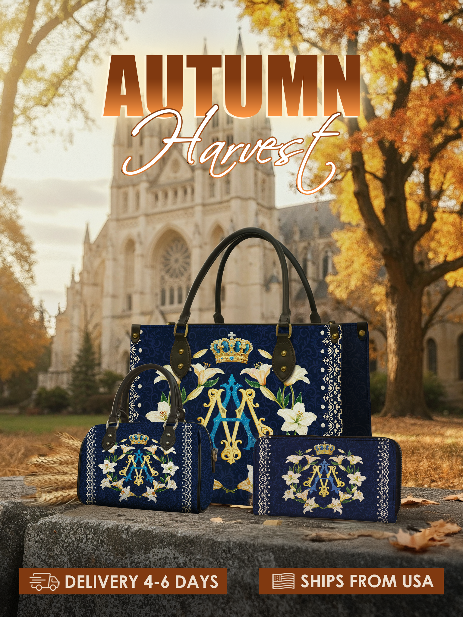 All of our handbags and wallets are shipped directly from Goodyear, Arizona. You’ll receive tracking once your order ships.