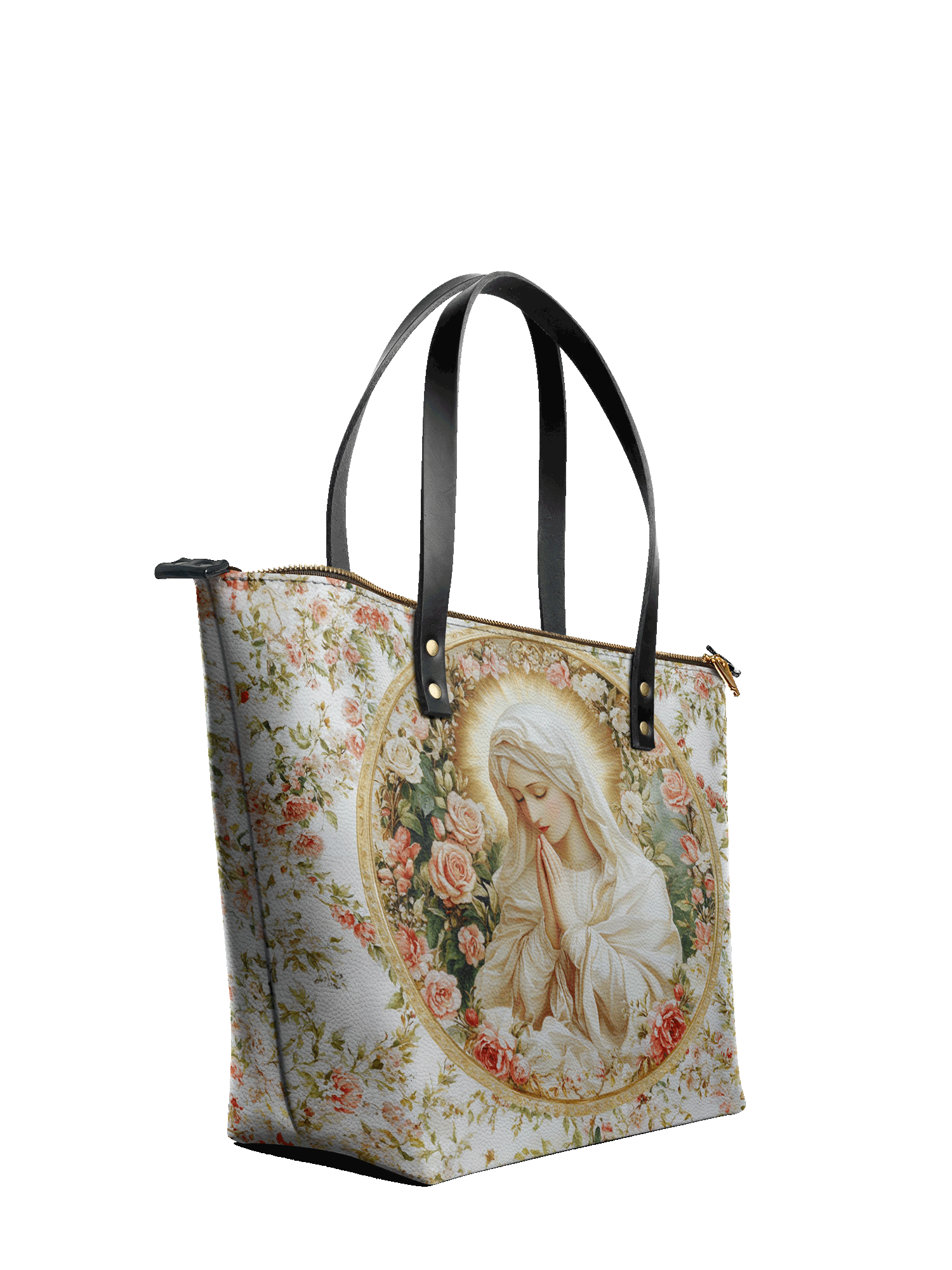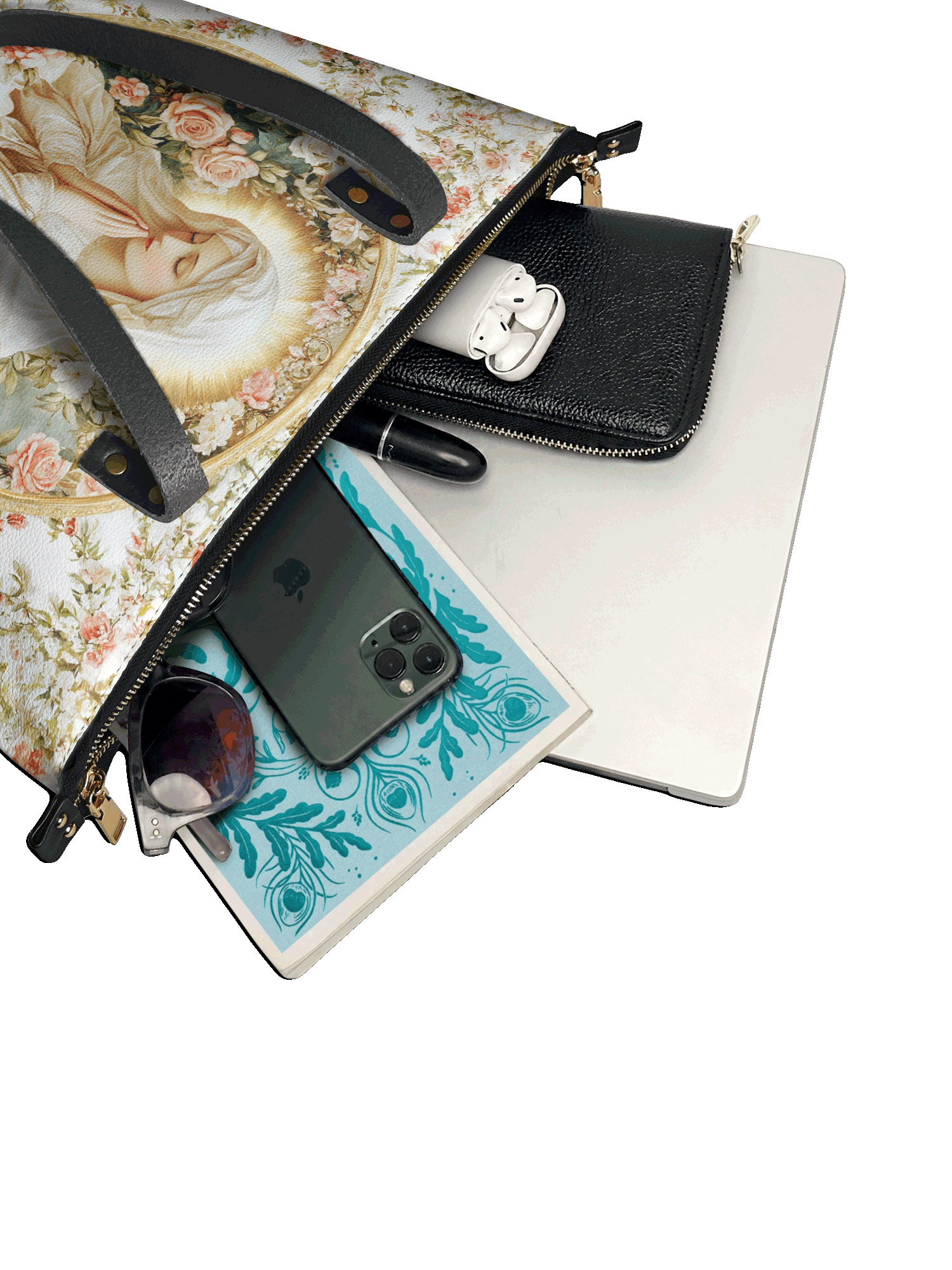 This tote bag is spacious and practical, easily fitting 2 large print Bibles, a 13" laptop, books, and daily must-haves.