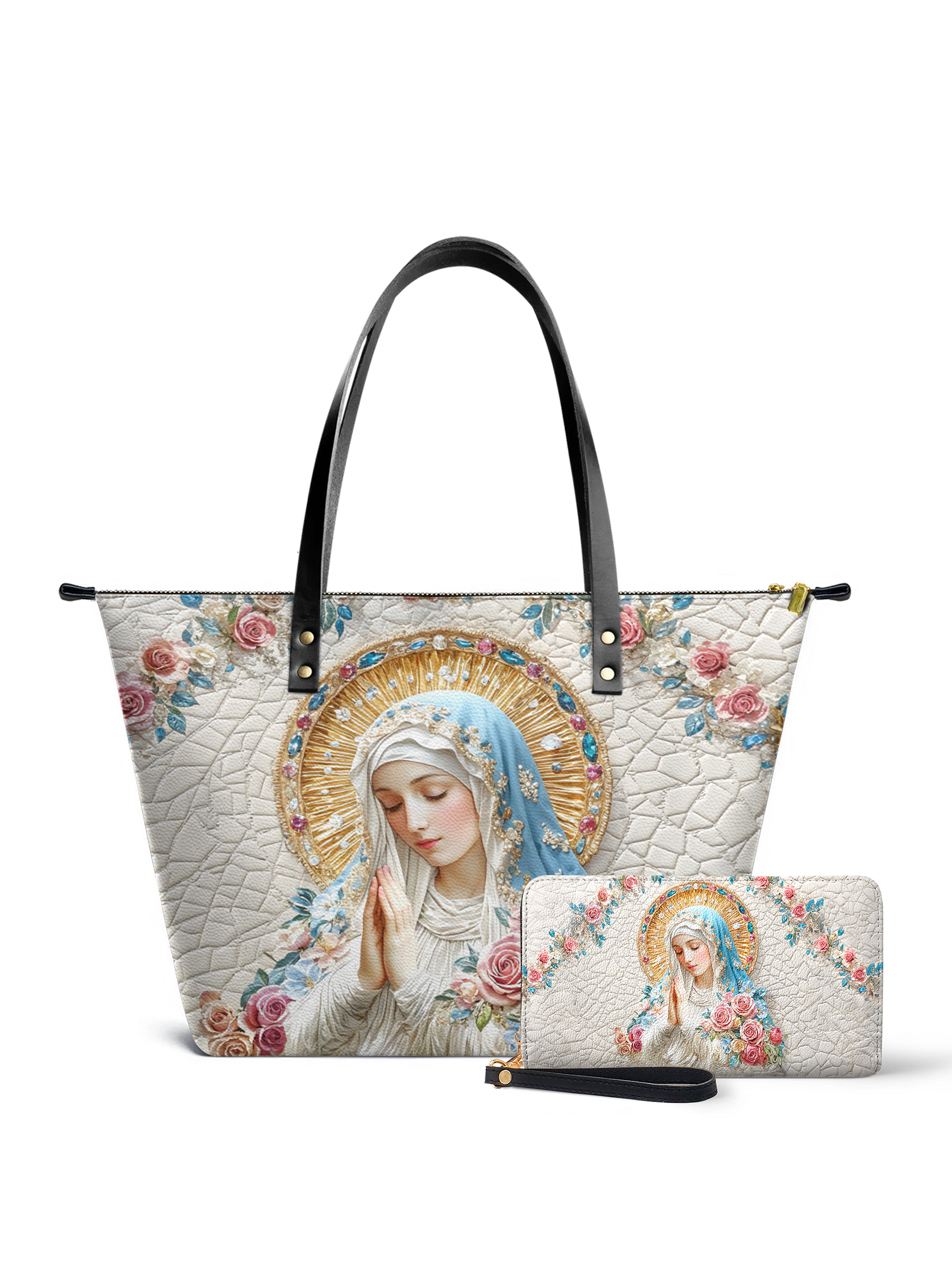 This tote bag is spacious and practical, easily fitting 2 large print Bibles, a 13" laptop, books, and daily must-haves.