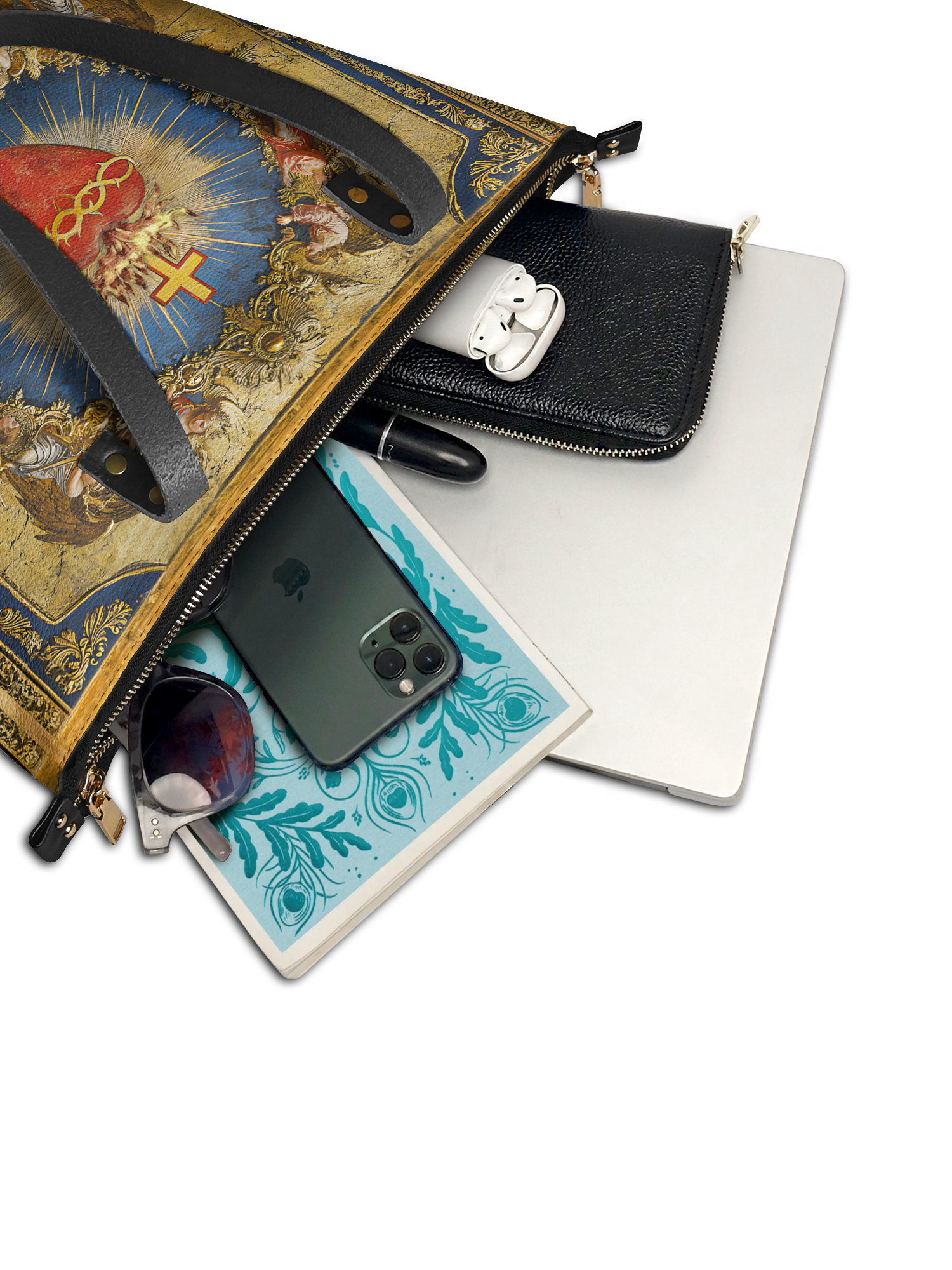 This tote bag is spacious and practical, easily fitting 2 large print Bibles, a 13" laptop, books, and daily must-haves.