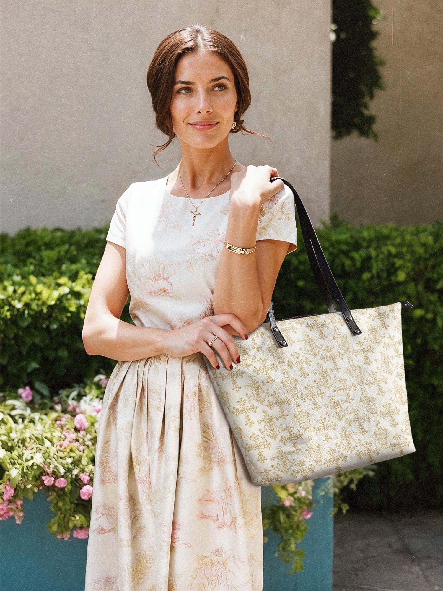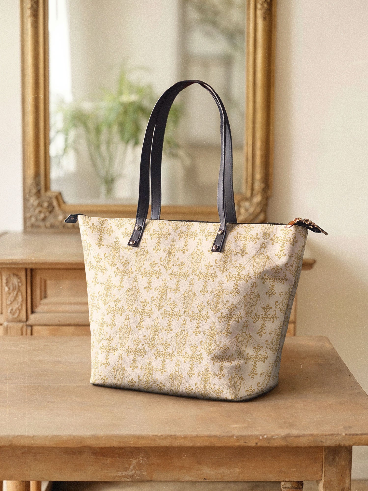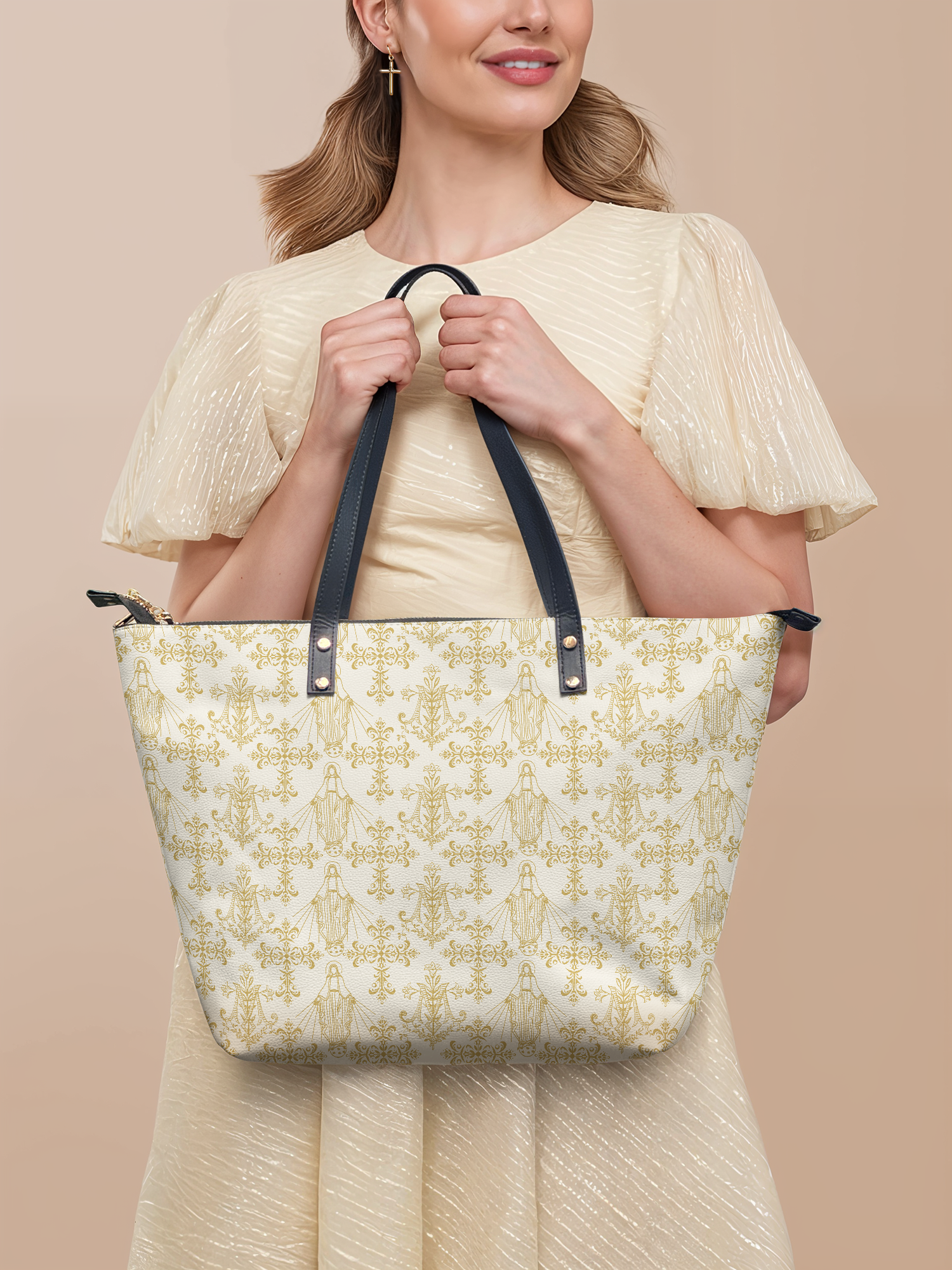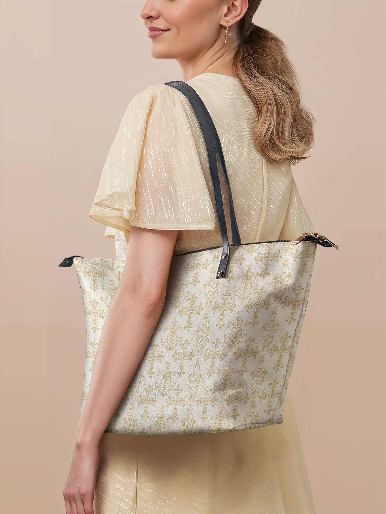This tote bag is spacious and practical, easily fitting 2 large print Bibles, a 13" laptop, books, and daily must-haves.